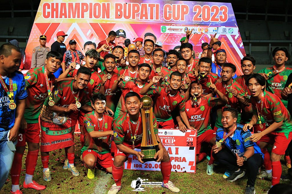 KUNCI JUARA: Tim sepakbola Kecamatan Loa Janan berhasil keluar sebagai juara Trofi Bupati Cup 2023. Mereka mengunci juara setelah menekuk tim sepakbola Kecamatan Muara Badak dengan skor tipis 2-1 (ist)