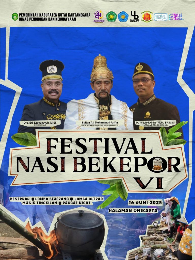 TENGGARONG — Tradisi dan pendidikan berpadu dalam Festival Nasi Bekepor VI Tahun 2025, yang berlangsung di halaman Universitas Kutai Kartanegara (Unikarta), Senin (16/6/2025). Kegiatan yang digagas Fakultas Ilmu Sosial dan Ilmu Politik (FISIP) ini bukan hanya mengangkat kuliner khas daerah, tetapi juga menanamkan nilai karakter, kepemimpinan, dan kebersamaan bagi mahasiswa.