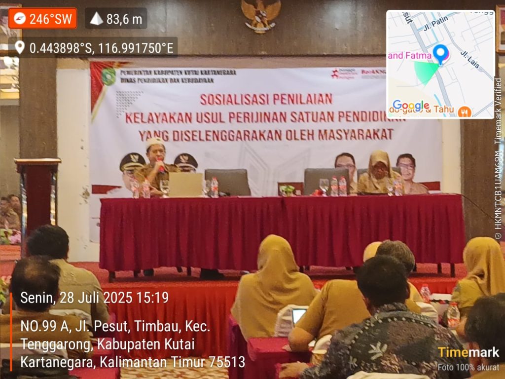 TENGGARONG-Guna meningkatkan kualitas pendidikan di Kutai Kartanegara melalui kolaborasi lintas sektor, Dinas Pendidikan Kukar menyelenggarakan sosialisasi penilaian kelayakan usul perizinan satuan pendidikan masyarakat, Senin (28/07/2025) di Hotel Grand Fatma Tenggarong. Kehadiran Dinas Pemberdayaan Masyarakat dan Desa (DPMD) Kukar menunjukkan dukungan penuh terhadap legalitas dan keberlanjutan lembaga pendidikan di tingkat desa.