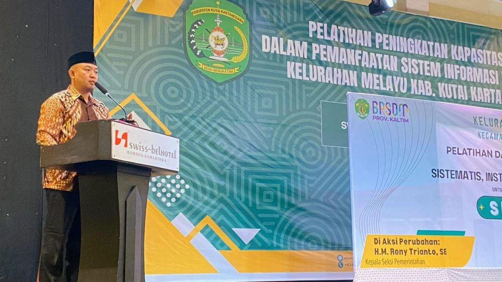 TENGGARONG – Pemerintah Kelurahan Melayu Kecamatan Tenggarong menggelar pelatihan peningkatan kapasitas bagi ketua rukun tetangga (RT) terkait pemanfaatan Sistem Informasi Profil Desa dan Kelurahan (Prodeskel). Kegiatan yang diikuti 91 peserta itu berlangsung di Swiss Belhotel Borneo Samarinda pada Sabtu, 13 September 2025.