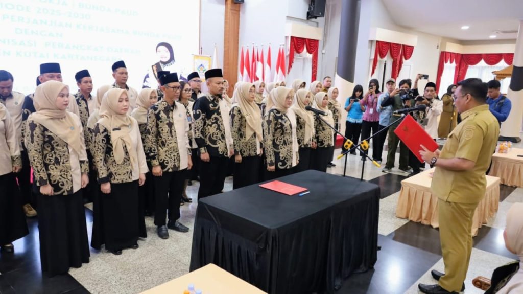TENGGARONG-Pemerintah Kabupaten Kutai Kartanegara (Kukar) terus menunjukkan komitmennya dalam meningkatkan kualitas pendidikan, terutama pada jenjang Pendidikan Anak Usia Dini (PAUD). Hal ini dibuktikan dengan pengukuhan Pengurus Kelompok Kerja (Pokja) Bunda PAUD Kabupaten Kukar 2025, yang diharapkan dapat menjadi motor penggerak peningkatan mutu PAUD di seluruh wilayah Kukar.