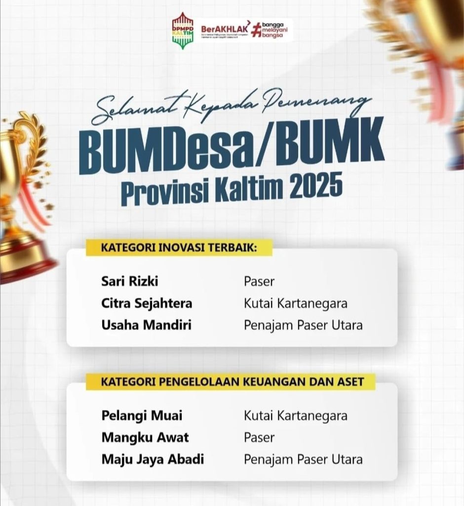 Kisah BUMDes Citra Sejahtera adalah contoh bagaimana desa mampu melahirkan inovasi yang berdampak. Dari sudut Santan Ulu, inovasi kecil yang lahir dari kebutuhan masyarakat mampu menjelma menjadi prestasi besar di tingkat provinsi.