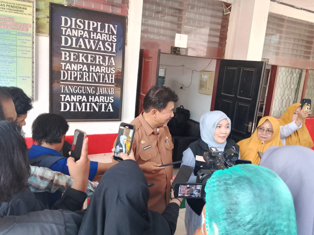Sekretaris Daerah Kutai Kartanegara Sunggono bersama Anggota DPD RI Perwakilan Kaltim, Aji Mirni Mawarni, saat diwawancarai wartawan usai meninjau SD Negeri 003 di Kecamatan Tenggarong.